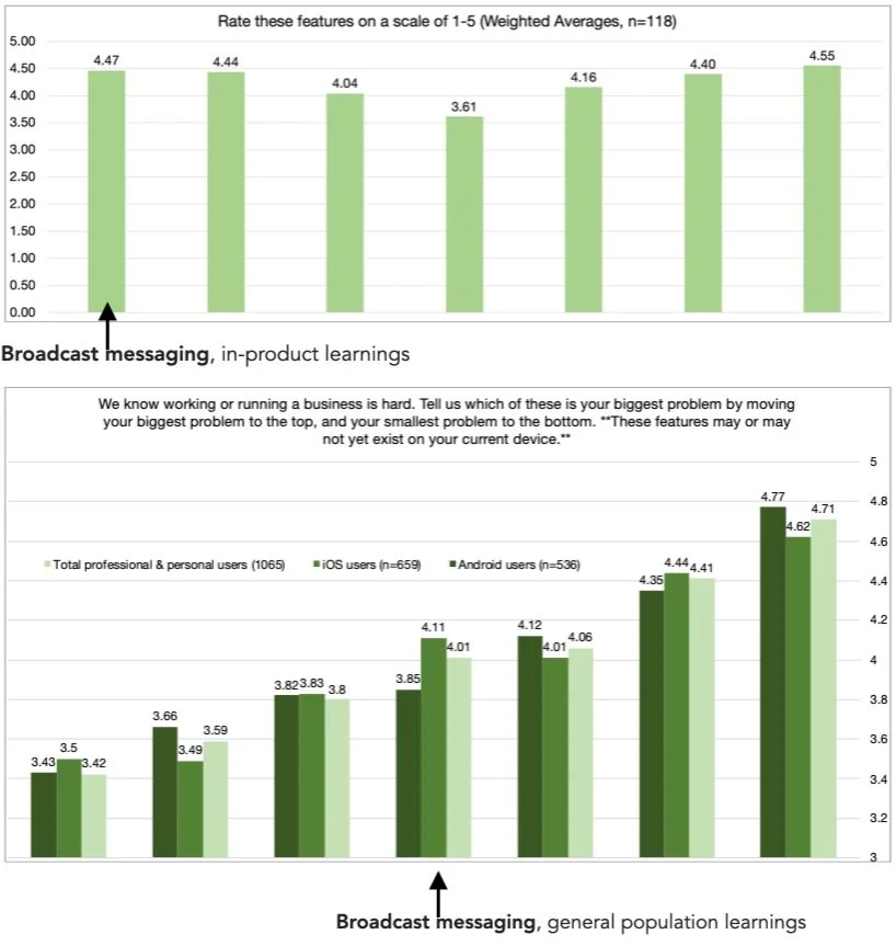 For our in-product survey, broadcast messaging was rated the most important need after caller-ID and spam blocking.